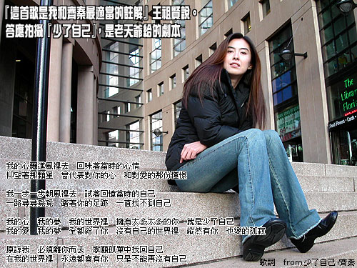 做?」上一次拍摄『悬崖』,王祖贤在M.V.中表达的是「义无反顾」的爱,而这次王祖贤说:「如果爱一个人,爱到没有自己,
